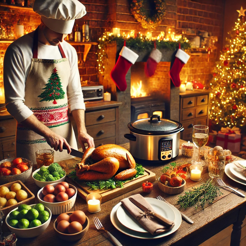 Time to sit down for Christmas dinner (but keep an eye on the potatoes and keep the sprouts warm before serving).