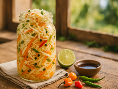 Pikliz is Haiti’s national condiment a symbol of balance between fire and freshness.